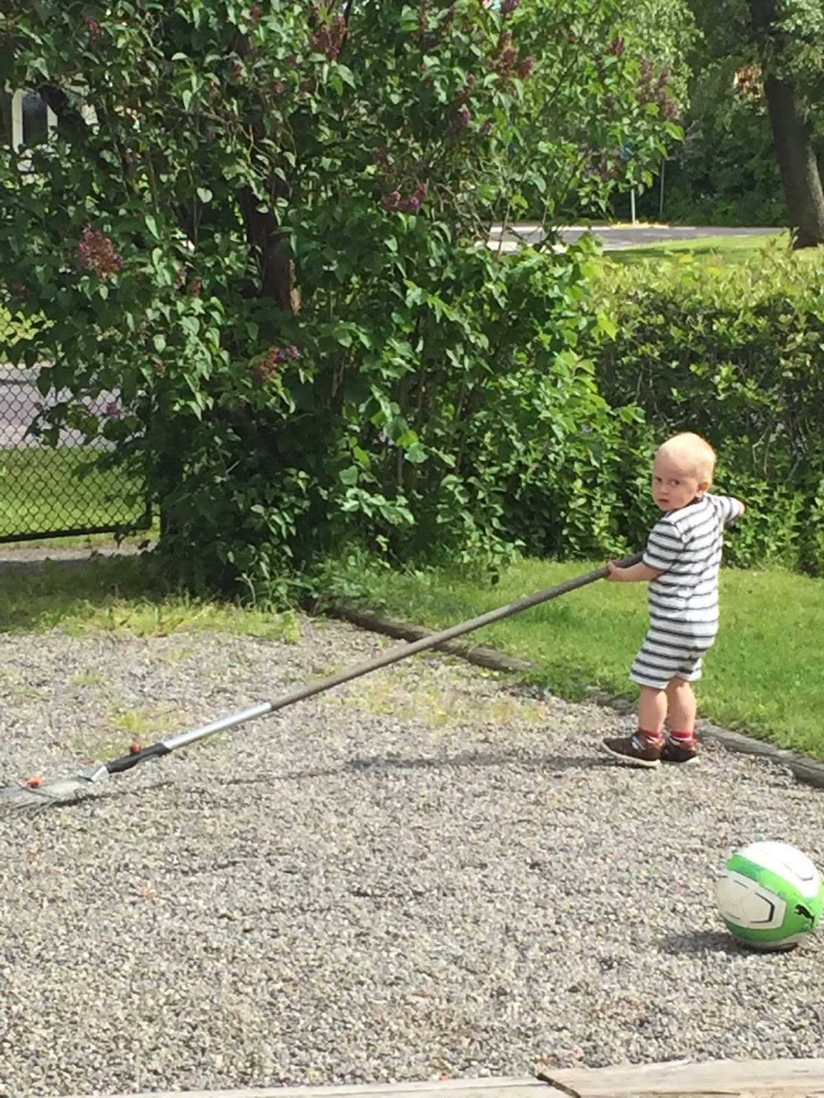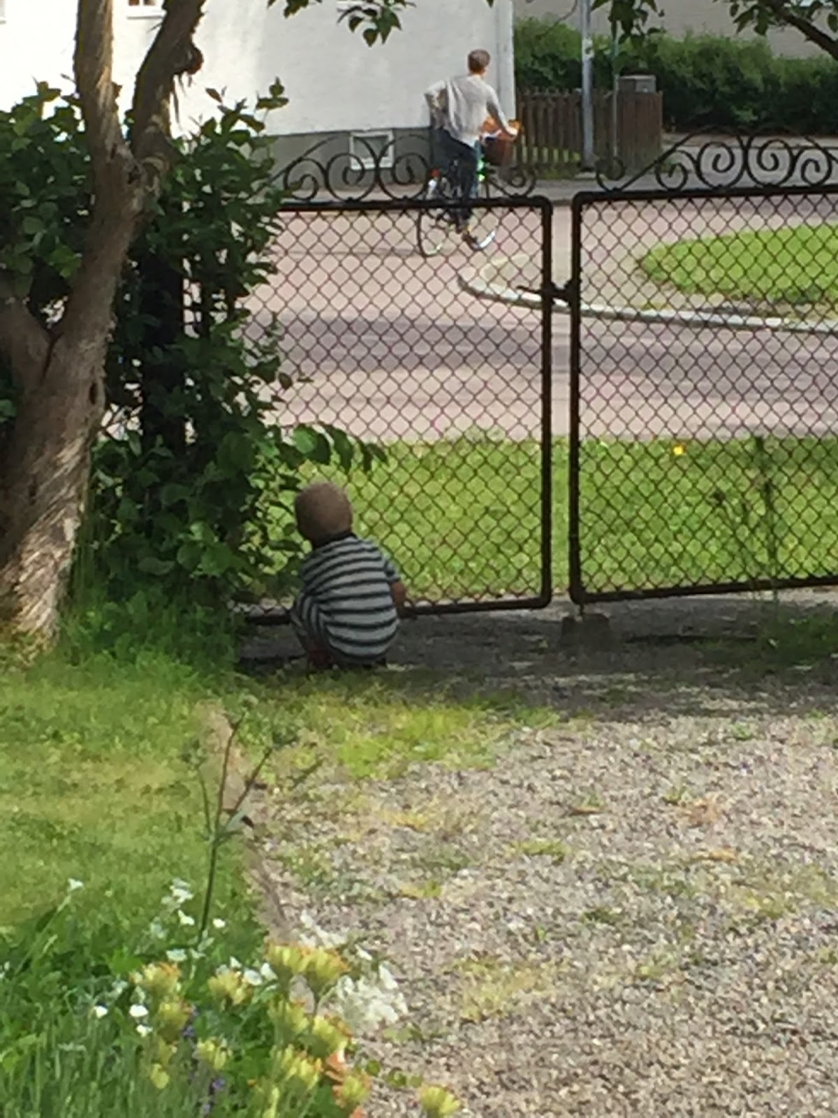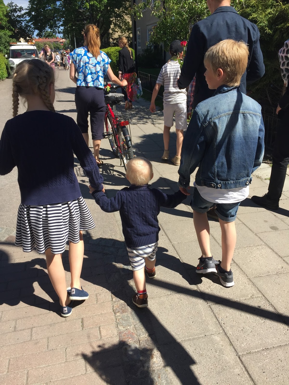 Ville var lite för vild för att vara kvar inne i kyrkan hela tiden så vi gick ut för lite bil och cykelspan när han blev för otålig.  När ceremonin var över gick vi en mysig promenad i solen hem till det fina huset på Apotekargatan och där bjöd syster yster på supermumsig fika inkl häng i trädgården och slapp på altanen.